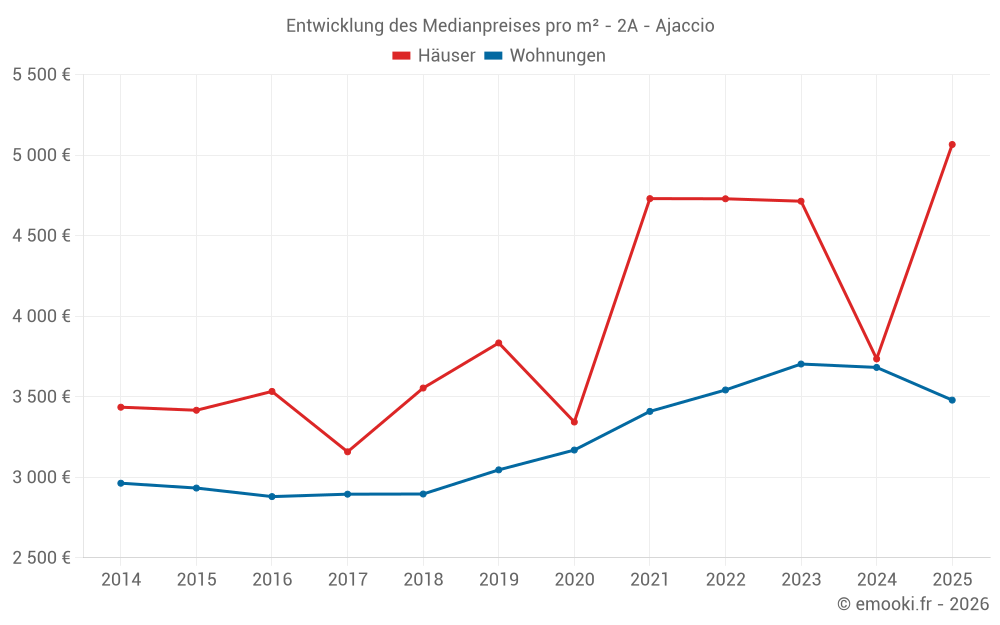 Werte der Preispercentile pro m² über die für den geschätzten Preis jeder Art von Immobilie verwendeten Zeiträume.