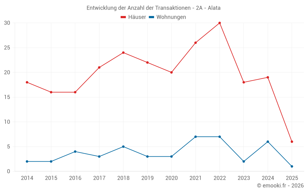 Karte der Immobilienpreise in der Gemeinde Alata, wählen Sie einen Abschnitt, um Transaktionen nach Parzelle zu sehen.