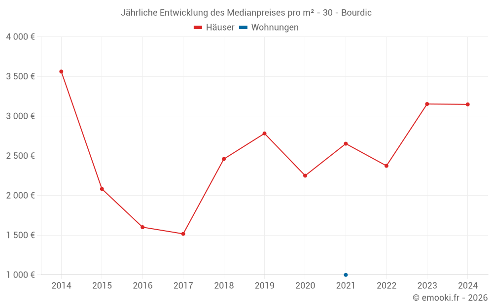 Entwicklung des Medianpreises pro m² von Wohnungen