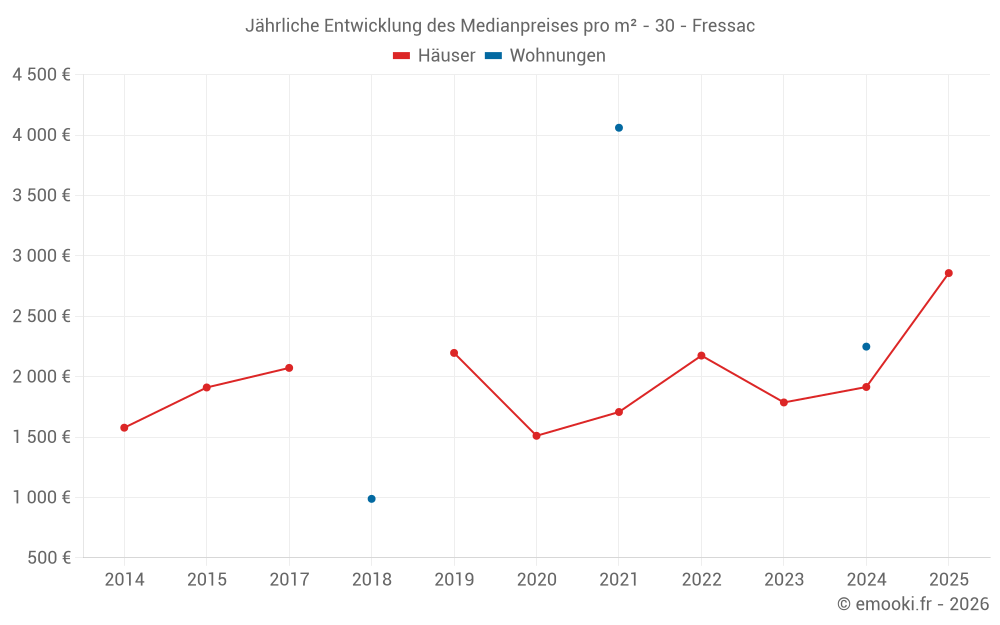 Entwicklung des Medianpreises pro m² von Wohnungen