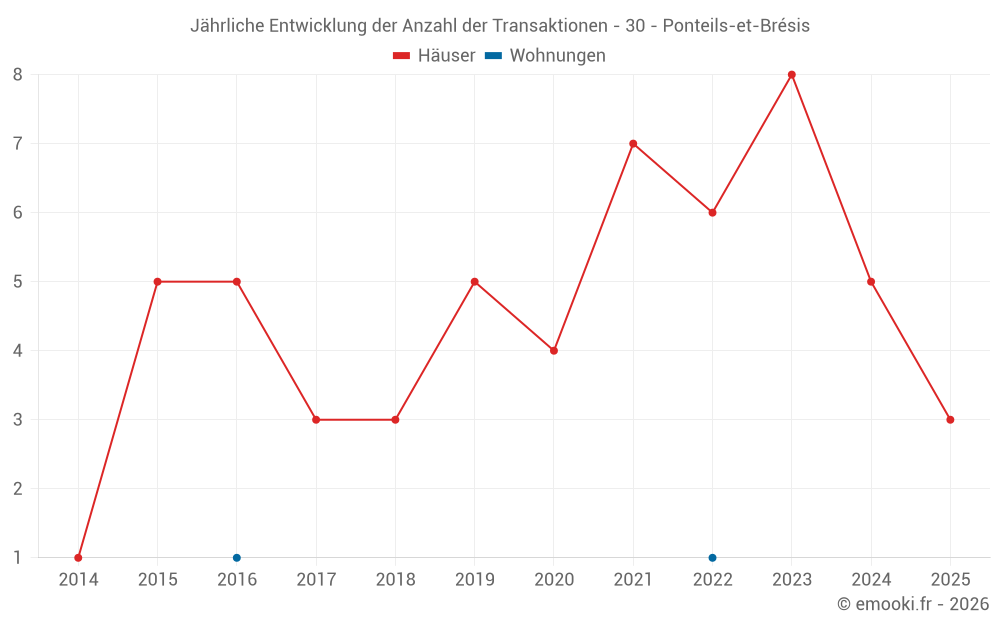 Karte der Immobilienpreise in der Gemeinde Ponteils-et-Brésis, wählen Sie einen Abschnitt, um Transaktionen nach Parzelle zu sehen.