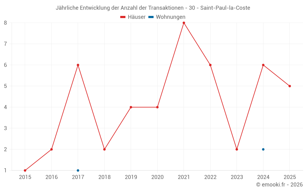 Der Preis pro m² von Häusern ist seit 1 Jahr um 0.7% gesunken, aber er ist in 4 Jahren um 45% gestiegen.