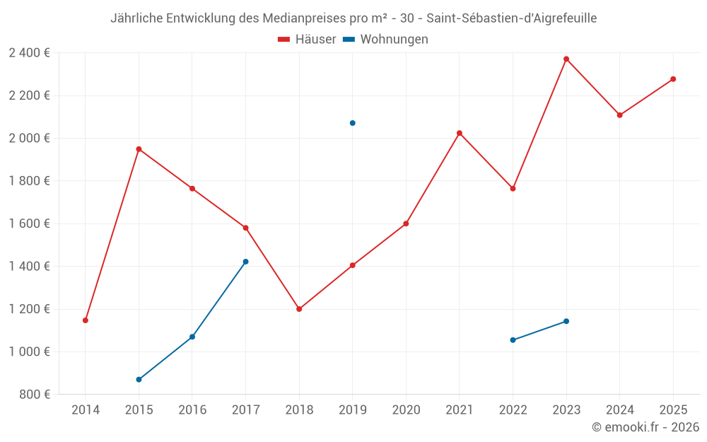 Preis pro m² in Saint-Sébastien-d'Aigrefeuille