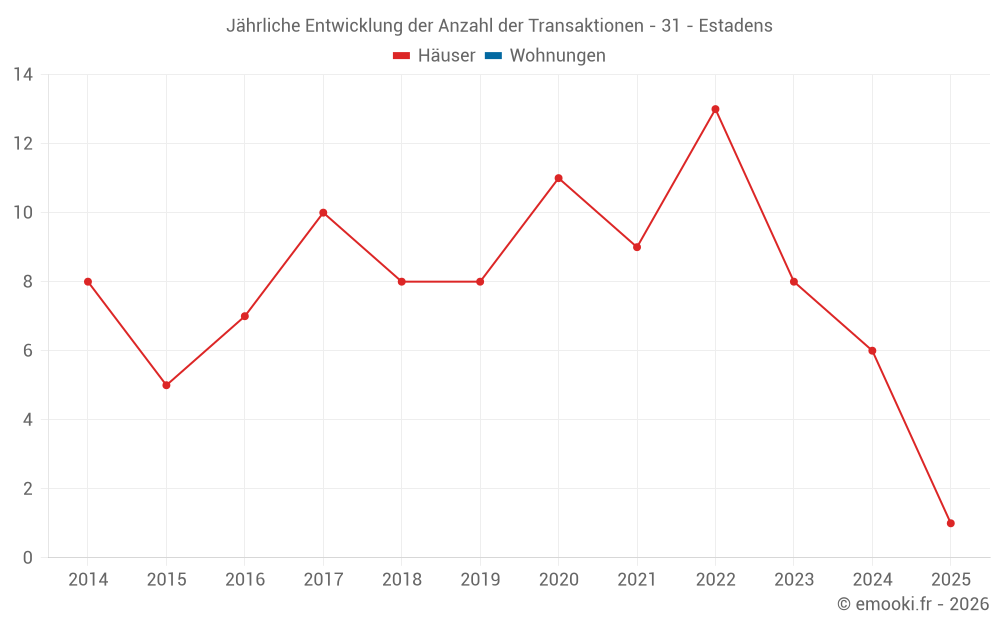 Karte der Immobilienpreise in der Gemeinde Estadens, wählen Sie einen Abschnitt, um Transaktionen nach Parzelle zu sehen.