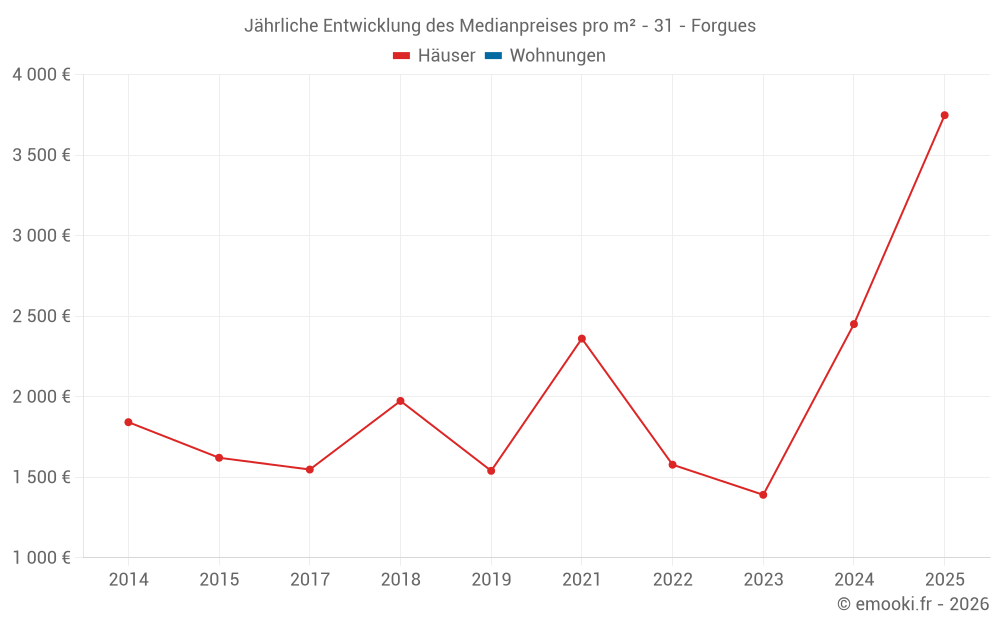 Entwicklung des Medianpreises pro m² von Häusern