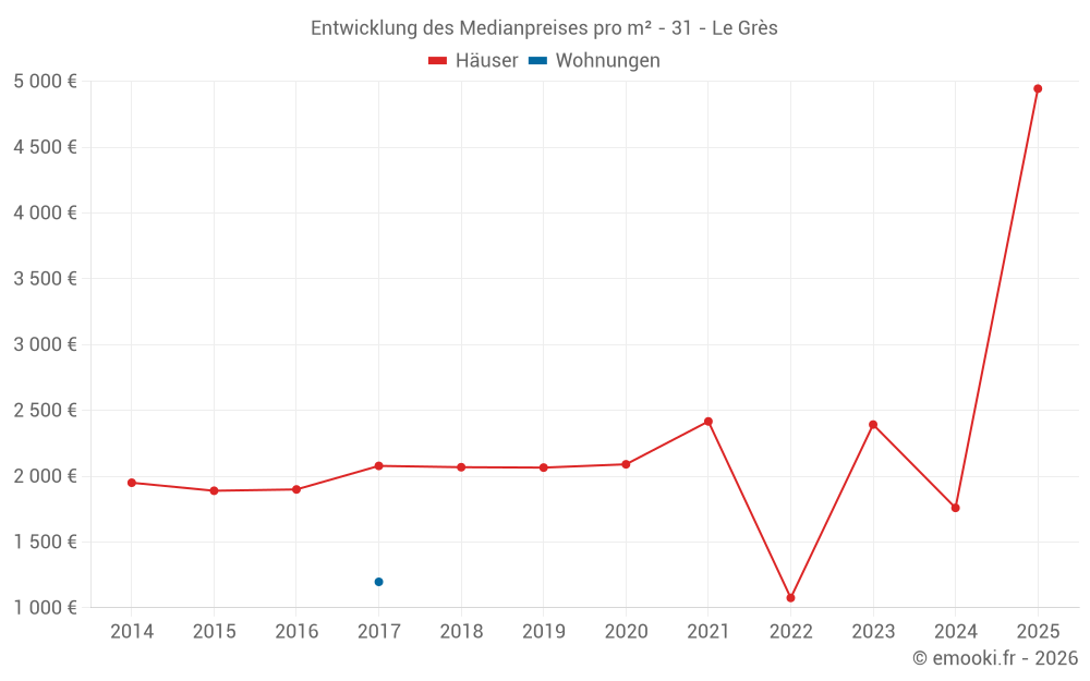 Werte der Preispercentile pro m² über die für den geschätzten Preis jeder Art von Immobilie verwendeten Zeiträume.