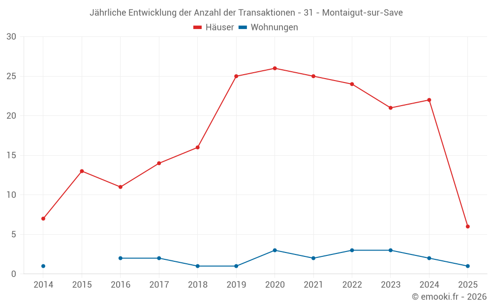 Der Durchschnittspreis auf den 21 Hausgeschäften der letzten 12 Monate in der Gemeinde Montaigut-sur-Save betrug 2 811 € pro Quadratmeter für einen mittleren Immobilienwert von 278 000 €. Über diesen Zeitraum hinweg lagen 60% der Transaktionen zwischen 2 645 und 2 926 € pro Quadratmeter (vom 2. bis zum 8. Dezil).