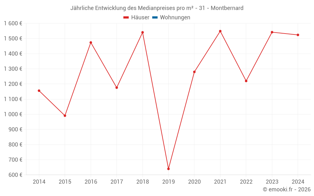 Entwicklung des Medianpreises pro m² von Häusern