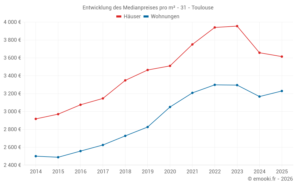 Werte der Preispercentile pro m² über die für den geschätzten Preis jeder Art von Immobilie verwendeten Zeiträume.