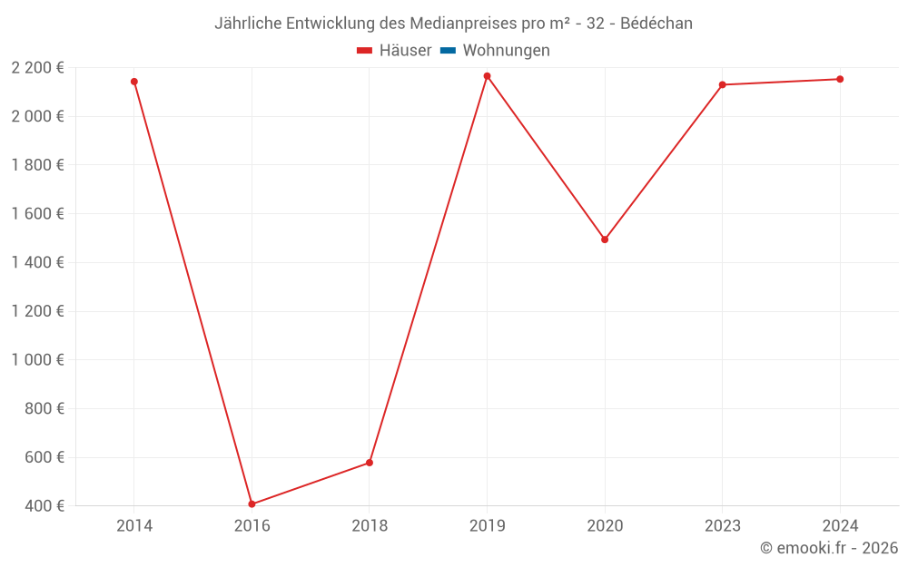Entwicklung des Medianpreises pro m² von Häusern