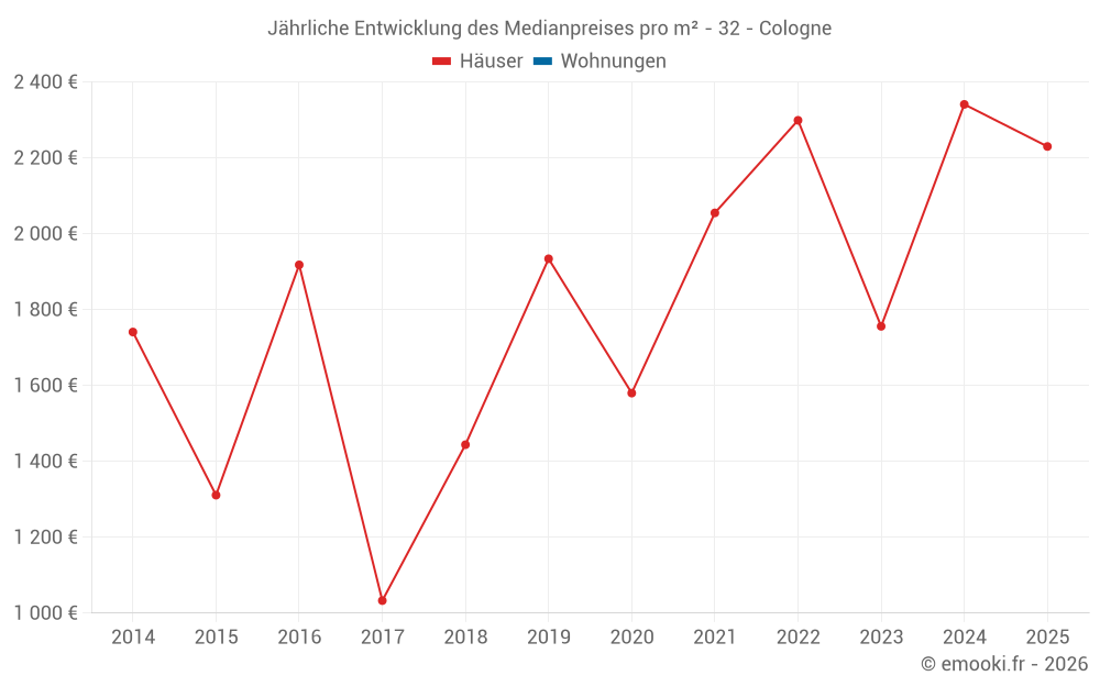 Entwicklung des Medianpreises pro m² von Häusern