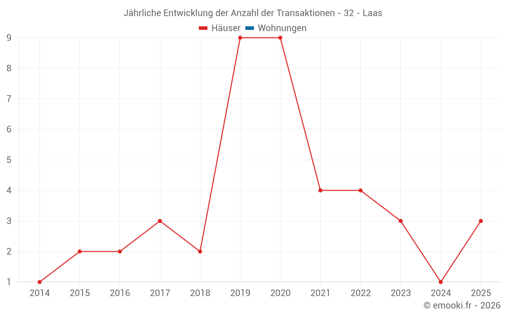 Karte der Immobilienpreise in der Gemeinde Laas, wählen Sie einen Abschnitt, um Transaktionen nach Parzelle zu sehen.