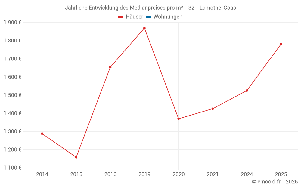 Karte der Immobilienpreise in der Gemeinde Lamothe-Goas, wählen Sie einen Abschnitt, um Transaktionen nach Parzelle zu sehen.
