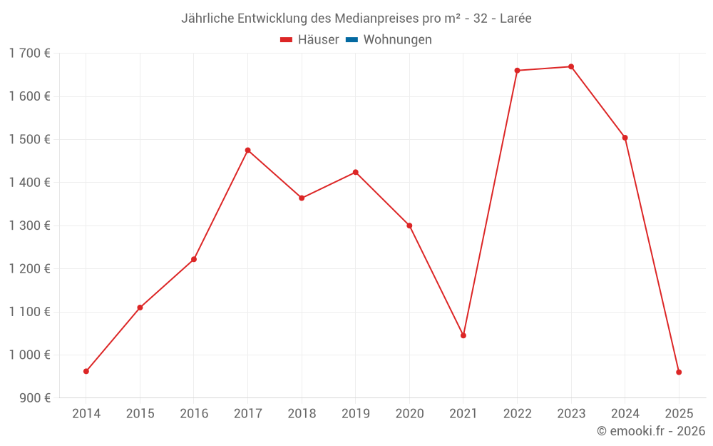 Karte der Immobilienpreise in der Gemeinde Larée, wählen Sie einen Abschnitt, um Transaktionen nach Parzelle zu sehen.