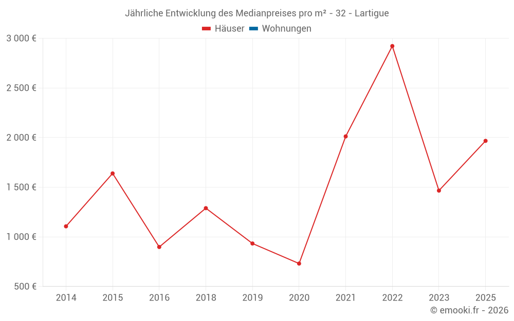 Karte der Immobilienpreise in der Gemeinde Lartigue, wählen Sie einen Abschnitt, um Transaktionen nach Parzelle zu sehen.
