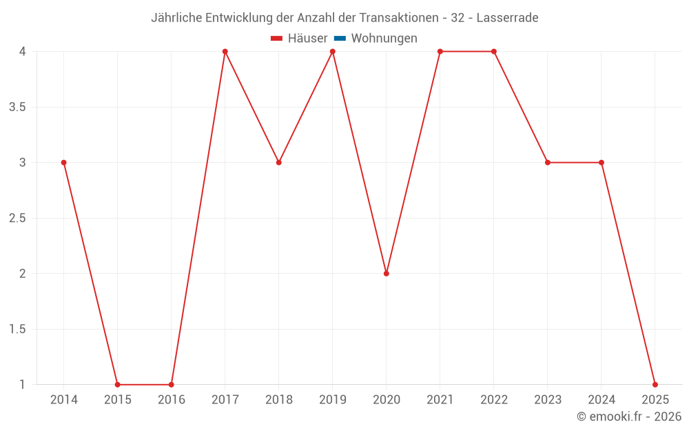 Karte der Immobilienpreise in der Gemeinde Lasserrade, wählen Sie einen Abschnitt, um Transaktionen nach Parzelle zu sehen.