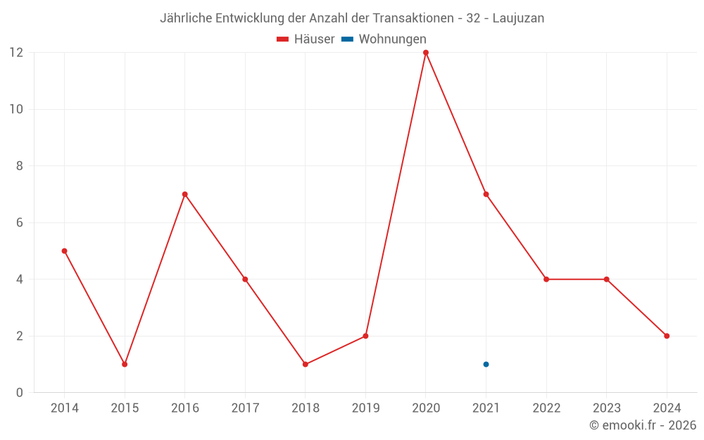 Karte der Immobilienpreise in der Gemeinde Laujuzan, wählen Sie einen Abschnitt, um Transaktionen nach Parzelle zu sehen.