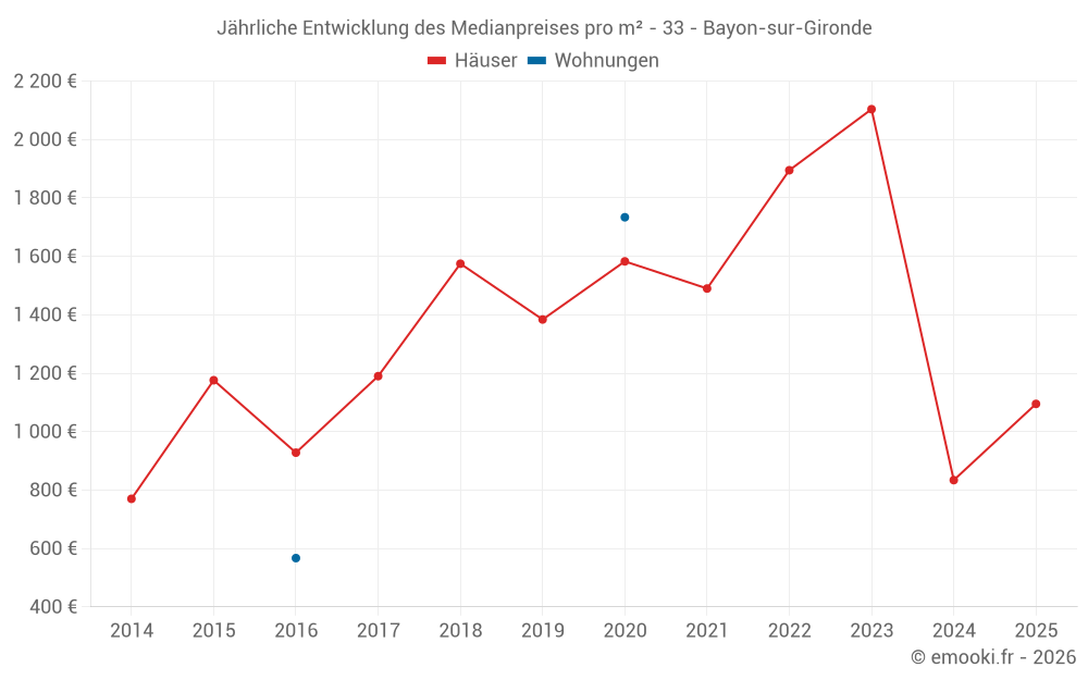 Entwicklung des Medianpreises pro m² von Wohnungen