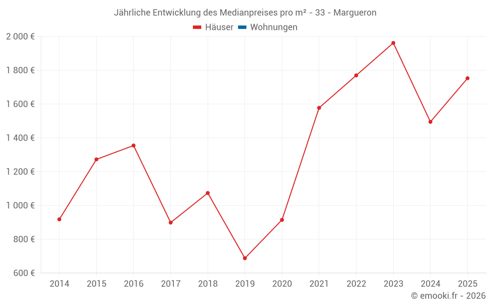 Entwicklung des Medianpreises pro m² von Häusern