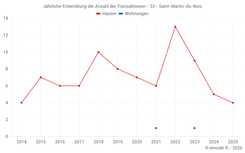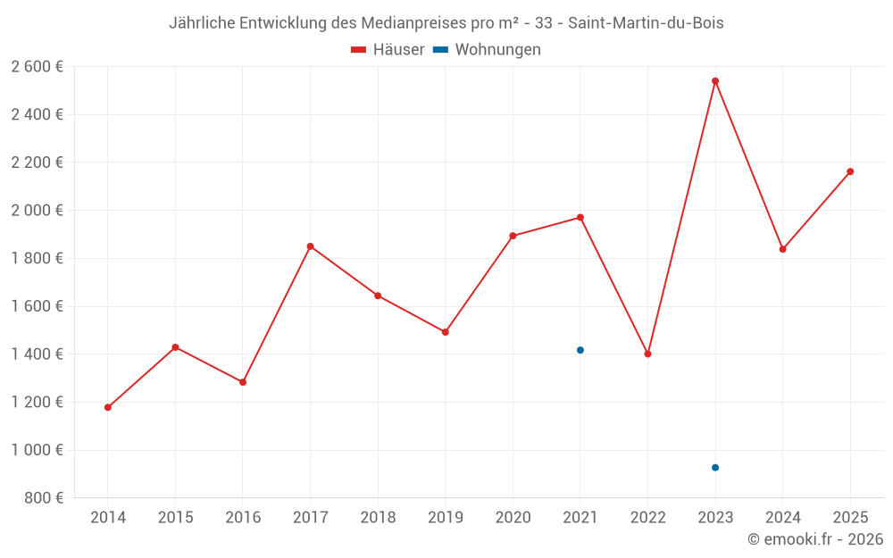 Der Preis pro m² von Häusern ist seit 2 Jahren um 15% gesunken, aber er ist in 11 Jahren um 84% gestiegen.