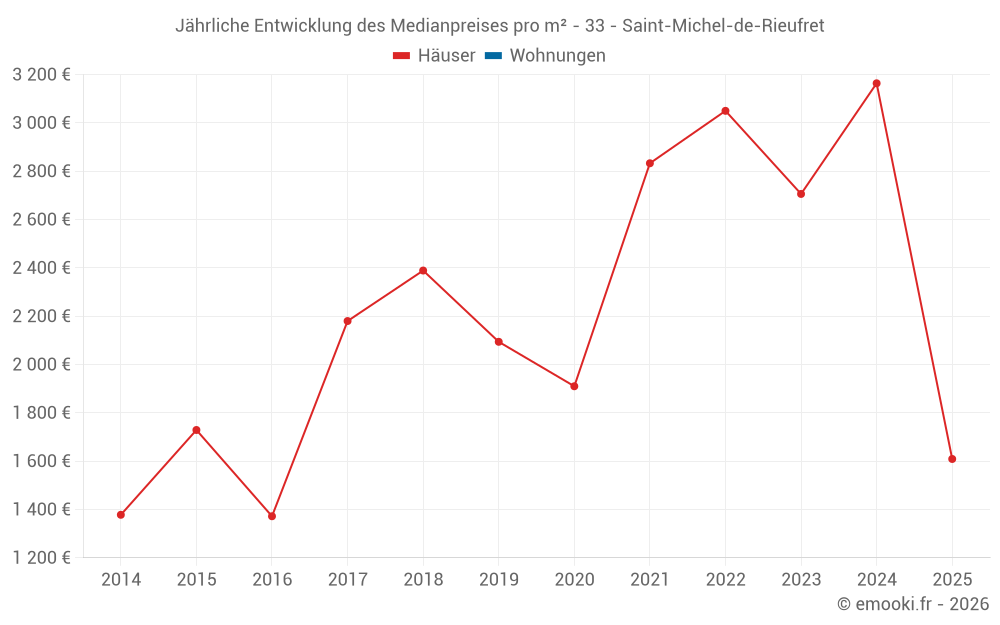 Entwicklung des Medianpreises pro m² von Häusern