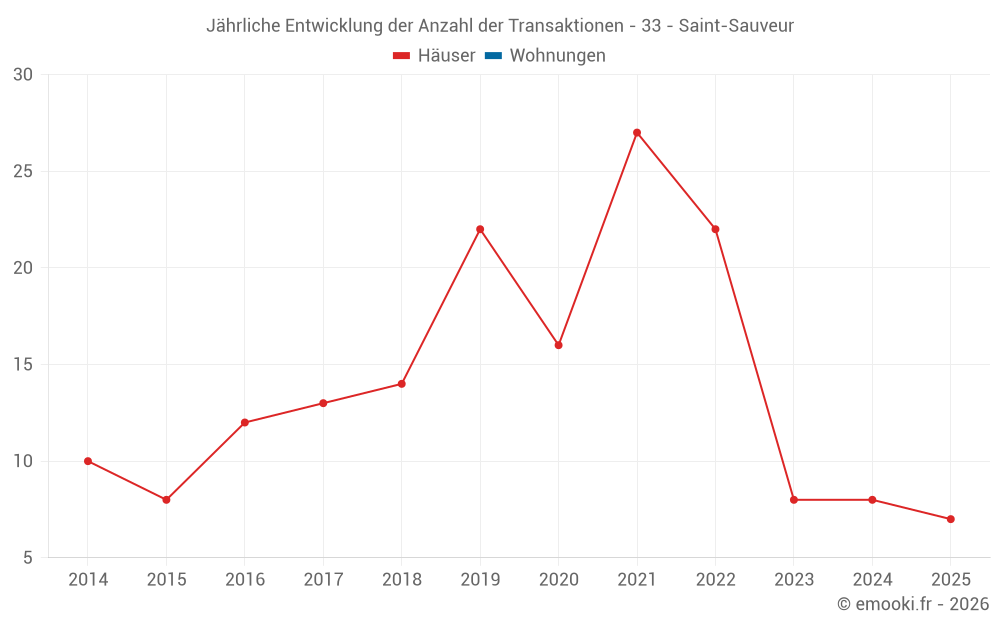 Der Durchschnittspreis auf den 17 Hausgeschäften der letzten 24 Monate in der Gemeinde Saint-Sauveur betrug 1 852 € pro Quadratmeter für einen mittleren Immobilienwert von 176 780 €. Über diesen Zeitraum hinweg lagen 60% der Transaktionen zwischen 990 und 2 382 € pro Quadratmeter (vom 2. bis zum 8. Dezil).