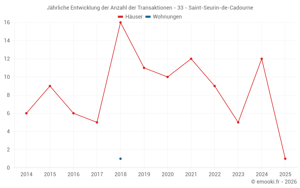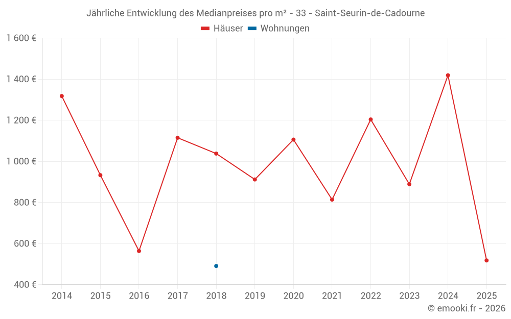 Der Durchschnittspreis auf den 17 Hausgeschäften der letzten 24 Monate in der Gemeinde Saint-Seurin-de-Cadourne betrug 1 294 € pro Quadratmeter für einen mittleren Immobilienwert von 150 000 €. Über diesen Zeitraum hinweg lagen 60% der Transaktionen zwischen 863 und 2 067 € pro Quadratmeter (vom 2. bis zum 8. Dezil).