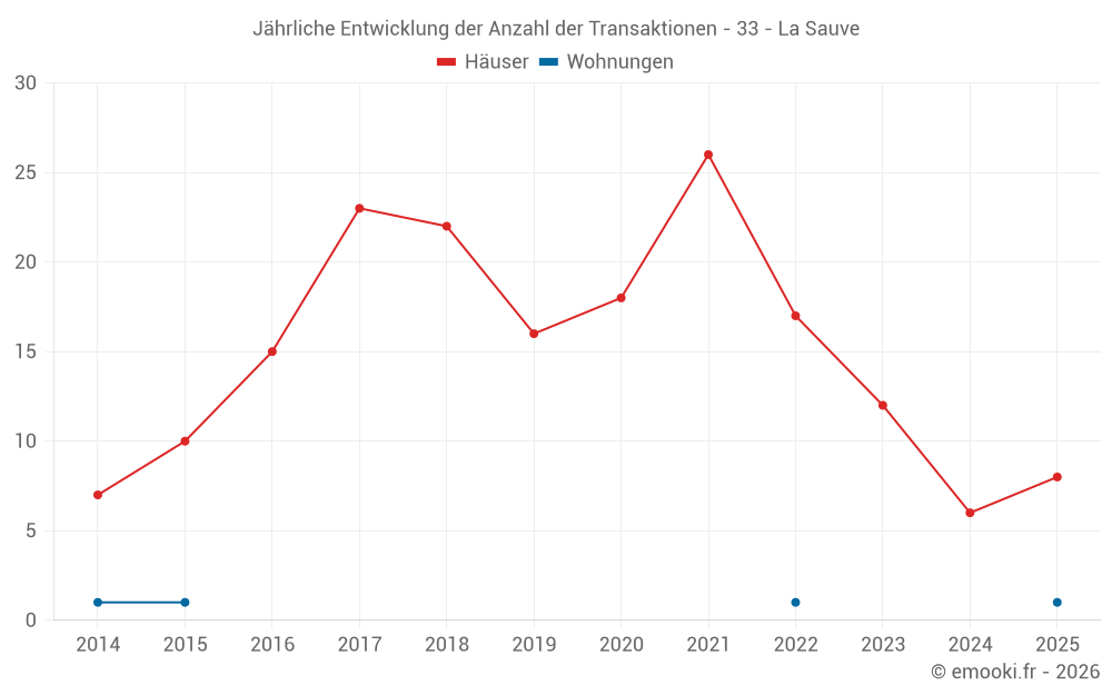 Der Durchschnittspreis auf den 22 Hausgeschäften der letzten 24 Monate in der Gemeinde La Sauve betrug 2 275 € pro Quadratmeter für einen mittleren Immobilienwert von 204 495 €. Über diesen Zeitraum hinweg lagen 60% der Transaktionen zwischen 1 185 und 3 087 € pro Quadratmeter (vom 2. bis zum 8. Dezil).