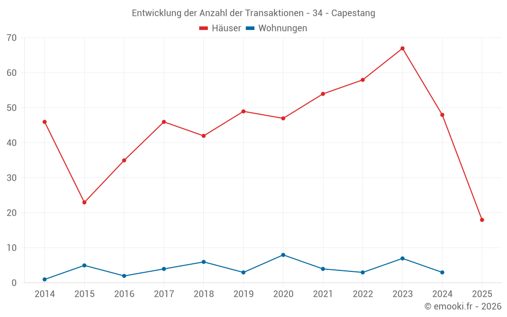 Karte der Immobilienpreise in der Gemeinde Capestang, wählen Sie einen Abschnitt, um Transaktionen nach Parzelle zu sehen.