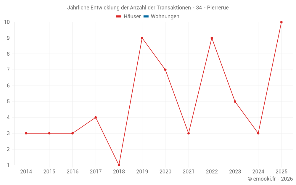 Der Preis pro m² von Häusern ist seit 3 Jahren um 36% gestiegen, aber er ist in 5 Jahren um 4.4% gesunken.