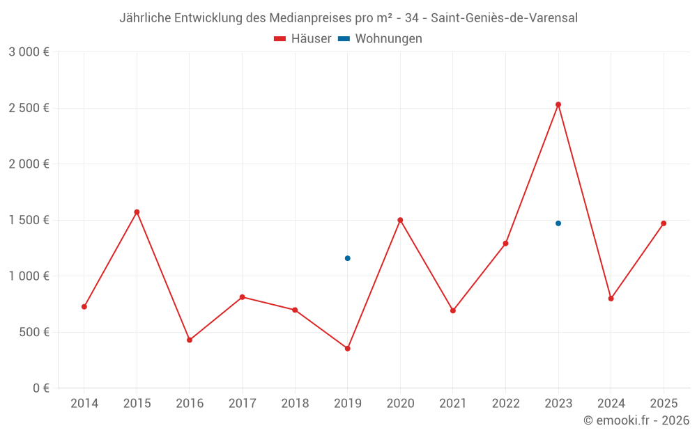 Entwicklung des Medianpreises pro m² von Wohnungen