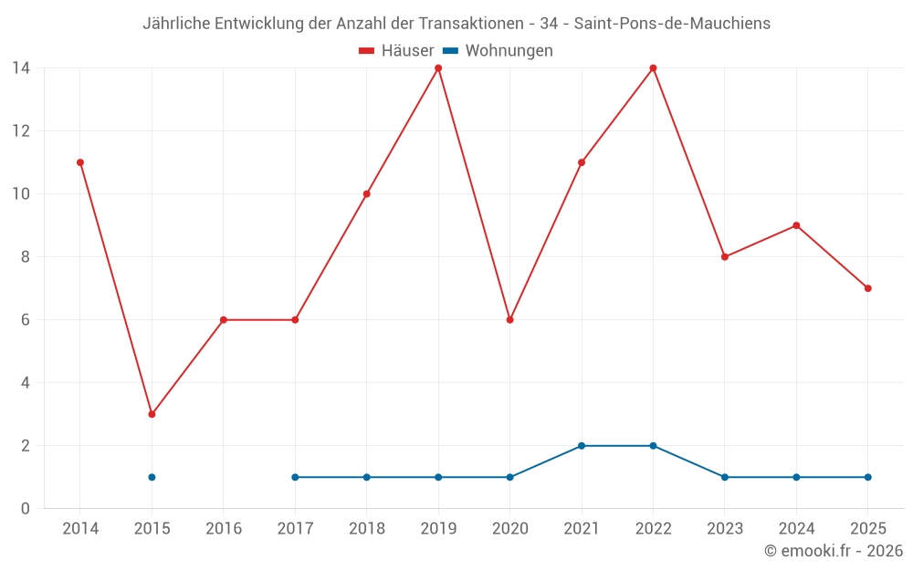 Der Durchschnittspreis auf den 20 Hausgeschäften der letzten 24 Monate in der Gemeinde Saint-Pons-de-Mauchiens betrug 2 446 € pro Quadratmeter für einen mittleren Immobilienwert von 304 000 €. Über diesen Zeitraum hinweg lagen 60% der Transaktionen zwischen 1 680 und 3 577 € pro Quadratmeter (vom 2. bis zum 8. Dezil).