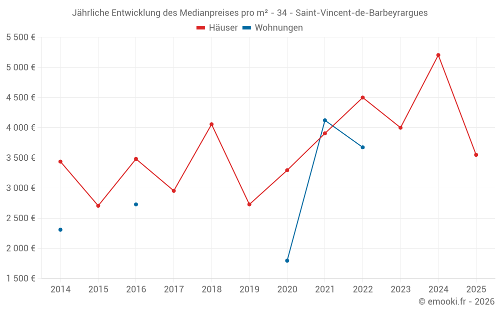 Preis pro m² in Saint-Vincent-de-Barbeyrargues