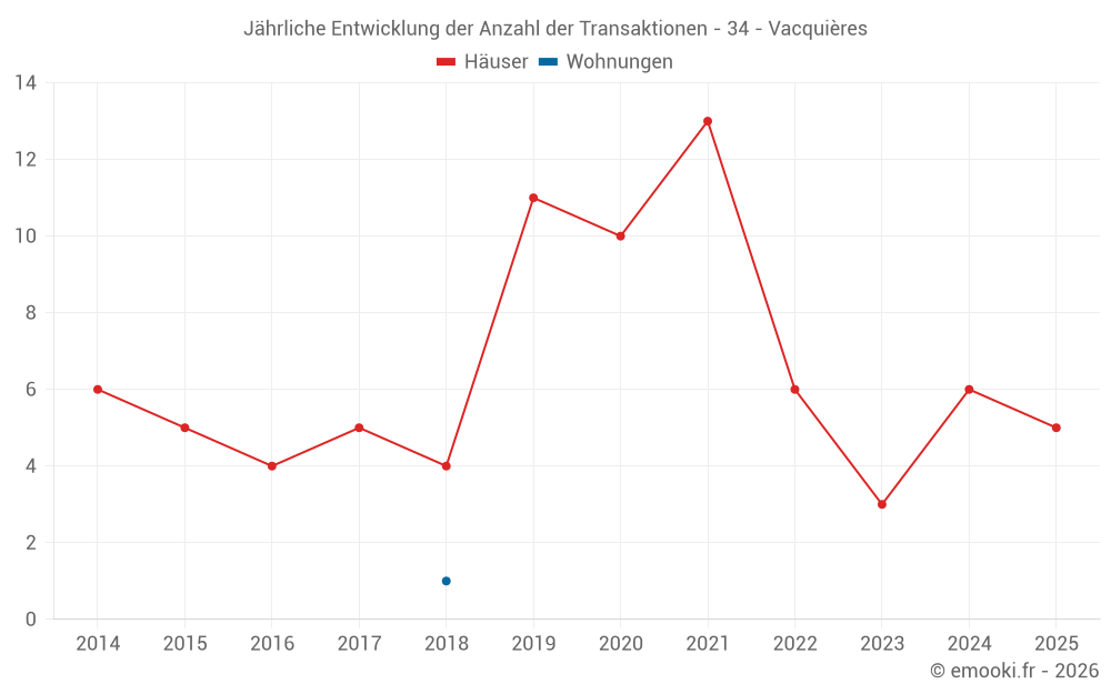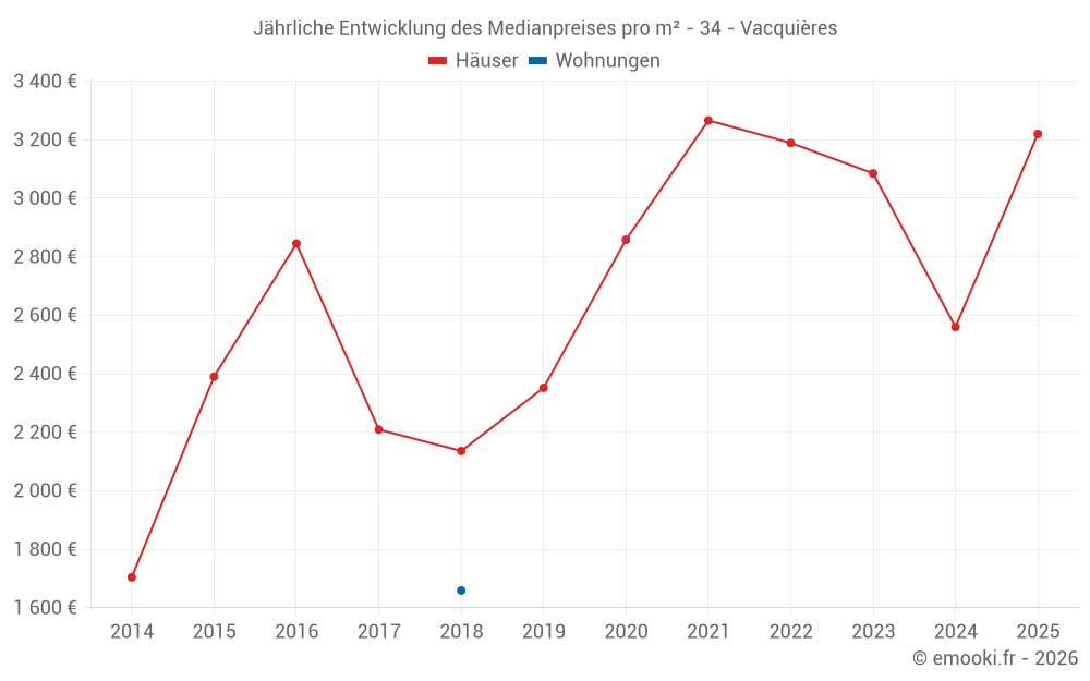 Der Preis pro m² von Häusern ist seit 4 Jahren um 1.4% gesunken, aber er ist in 11 Jahren um 89% gestiegen.