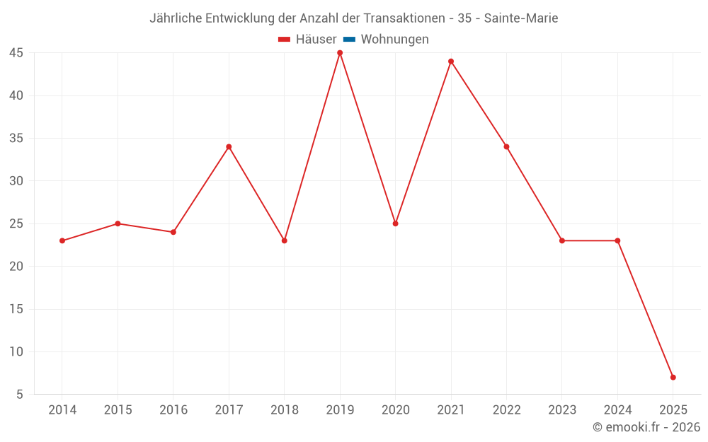 Der Durchschnittspreis auf den 27 Hausgeschäften der letzten 12 Monate in der Gemeinde Sainte-Marie betrug 1 877 € pro Quadratmeter für einen mittleren Immobilienwert von 140 000 €. Über diesen Zeitraum hinweg lagen 60% der Transaktionen zwischen 1 490 und 2 480 € pro Quadratmeter (vom 2. bis zum 8. Dezil).