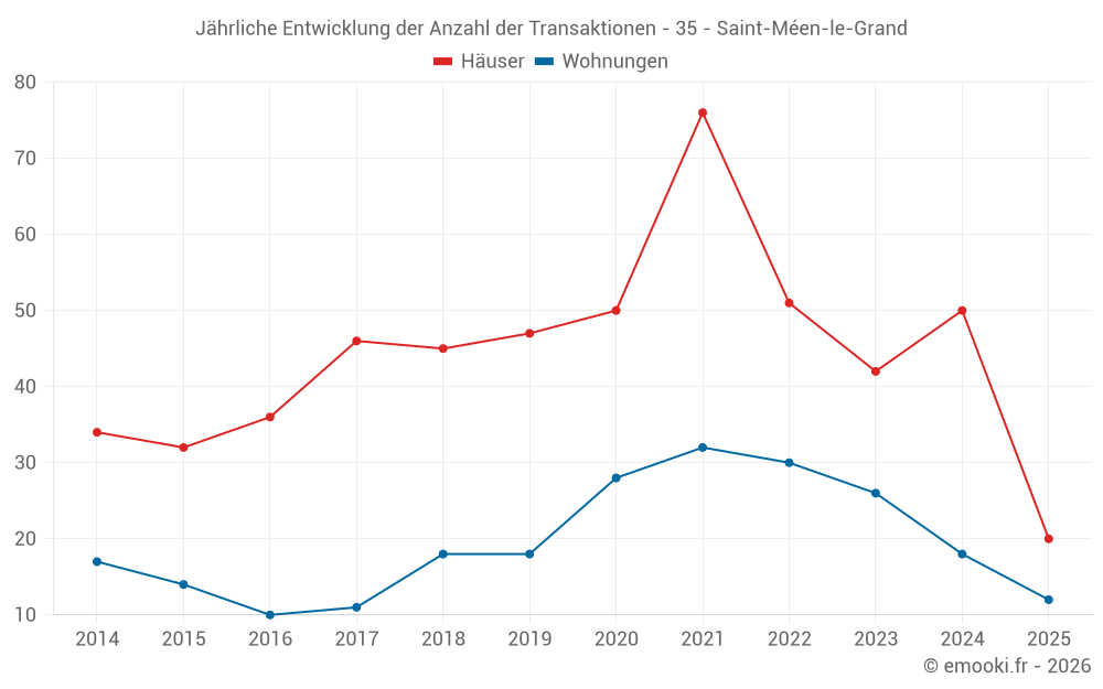 Der Durchschnittspreis auf den 20 Hausgeschäften der letzten 6 Monate in der Gemeinde Saint-Méen-le-Grand betrug 1 825 € pro Quadratmeter für einen mittleren Immobilienwert von 162 500 €. Über diesen Zeitraum hinweg lagen 60% der Transaktionen zwischen 855 und 2 215 € pro Quadratmeter (vom 2. bis zum 8. Dezil).