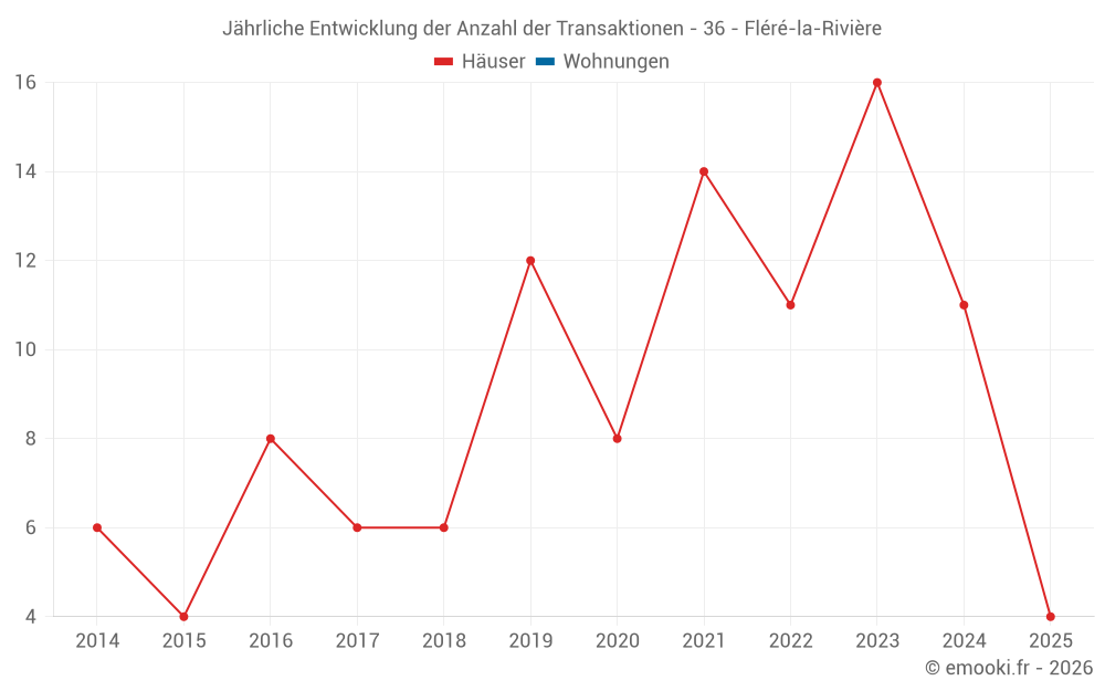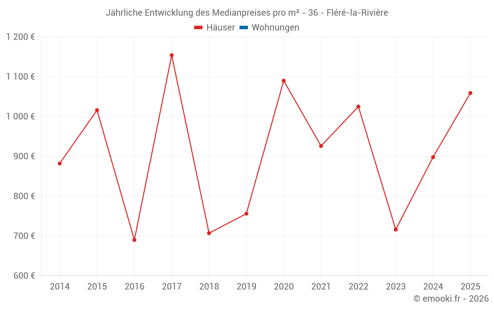 Der Durchschnittspreis auf den 23 Hausgeschäften der letzten 24 Monate in der Gemeinde Fléré-la-Rivière betrug 849 € pro Quadratmeter für einen mittleren Immobilienwert von 69 900 €. Über diesen Zeitraum hinweg lagen 60% der Transaktionen zwischen 646 und 1 365 € pro Quadratmeter (vom 2. bis zum 8. Dezil).