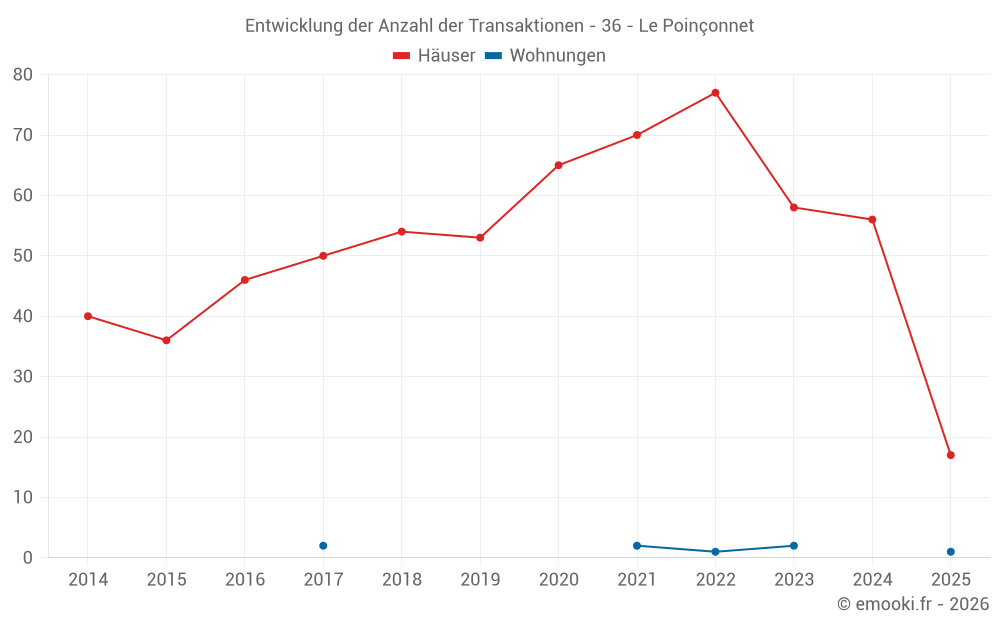 Karte der Immobilienpreise in der Gemeinde Le Poinçonnet, wählen Sie einen Abschnitt, um Transaktionen nach Parzelle zu sehen.