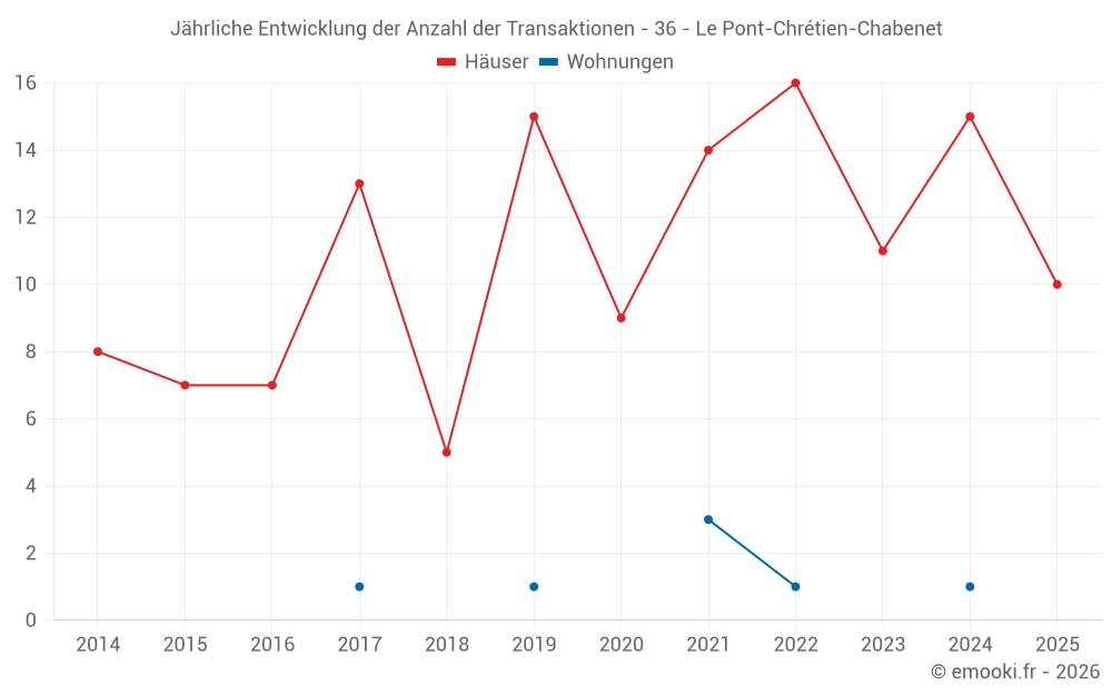 Der Durchschnittspreis auf den 19 Hausgeschäften der letzten 12 Monate in der Gemeinde Le Pont-Chrétien-Chabenet betrug 889 € pro Quadratmeter für einen mittleren Immobilienwert von 80 000 €. Über diesen Zeitraum hinweg lagen 60% der Transaktionen zwischen 542 und 1 540 € pro Quadratmeter (vom 2. bis zum 8. Dezil).
