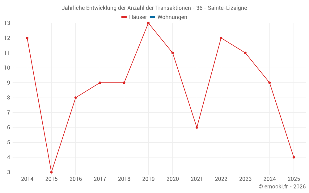 Der Durchschnittspreis auf den 20 Hausgeschäften der letzten 24 Monate in der Gemeinde Sainte-Lizaigne betrug 1 078 € pro Quadratmeter für einen mittleren Immobilienwert von 126 450 €. Über diesen Zeitraum hinweg lagen 60% der Transaktionen zwischen 640 und 1 437 € pro Quadratmeter (vom 2. bis zum 8. Dezil).