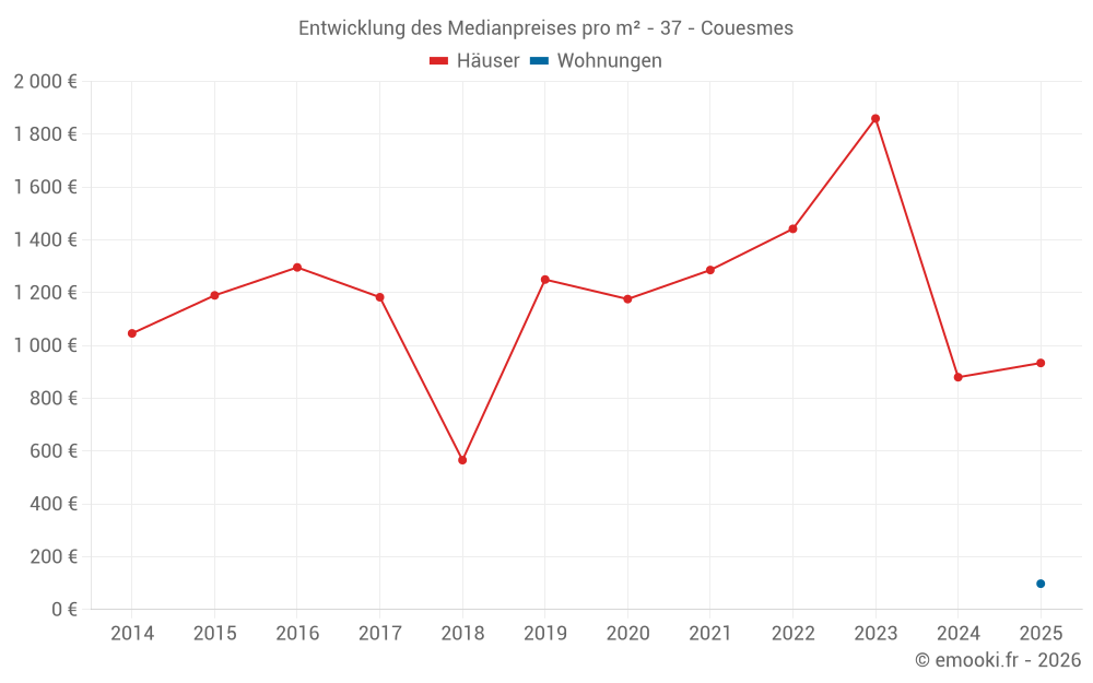 Karte der Immobilienpreise in der Gemeinde Couesmes, wählen Sie einen Abschnitt, um Transaktionen nach Parzelle zu sehen.