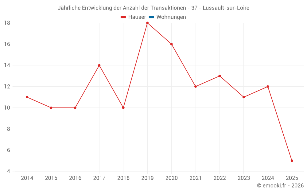 Der Durchschnittspreis auf den 21 Hausgeschäften der letzten 24 Monate in der Gemeinde Lussault-sur-Loire betrug 2 330 € pro Quadratmeter für einen mittleren Immobilienwert von 179 000 €. Über diesen Zeitraum hinweg lagen 60% der Transaktionen zwischen 1 391 und 2 679 € pro Quadratmeter (vom 2. bis zum 8. Dezil).