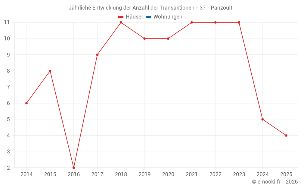 Der Preis pro m² von Häusern ist seit 2 Jahren um 30% gesunken, aber er ist in 7 Jahren um 20% gestiegen.