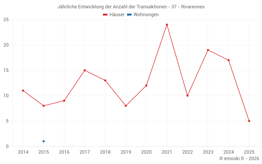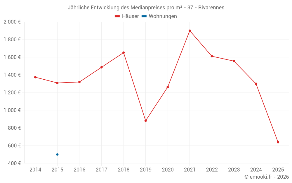 Der Durchschnittspreis auf den 32 Hausgeschäften der letzten 24 Monate in der Gemeinde Rivarennes betrug 1 358 € pro Quadratmeter für einen mittleren Immobilienwert von 127 500 €. Über diesen Zeitraum hinweg lagen 60% der Transaktionen zwischen 971 und 2 035 € pro Quadratmeter (vom 2. bis zum 8. Dezil).