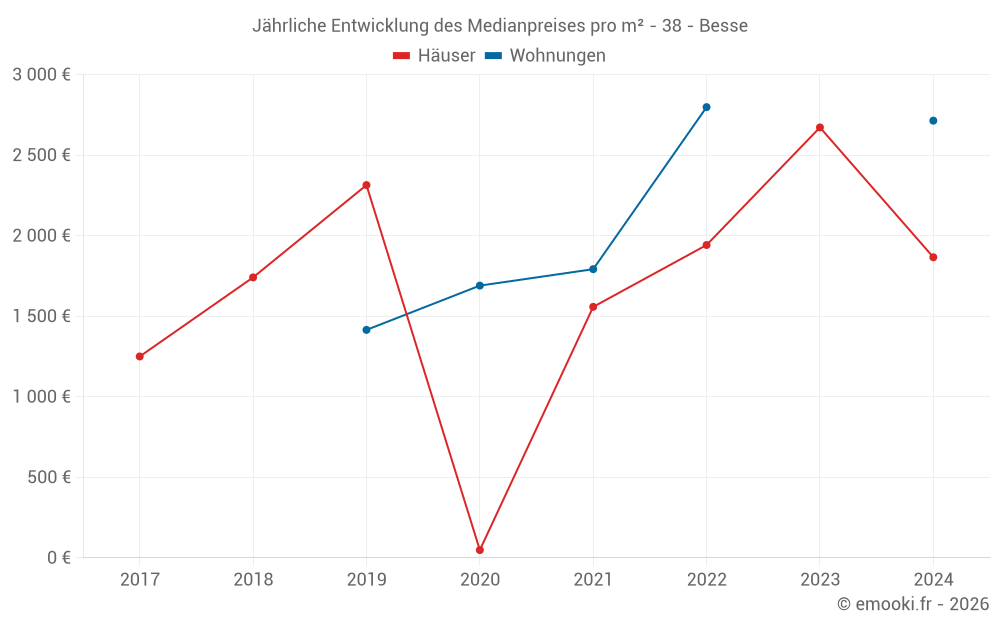 Entwicklung des Medianpreises pro m² von Wohnungen