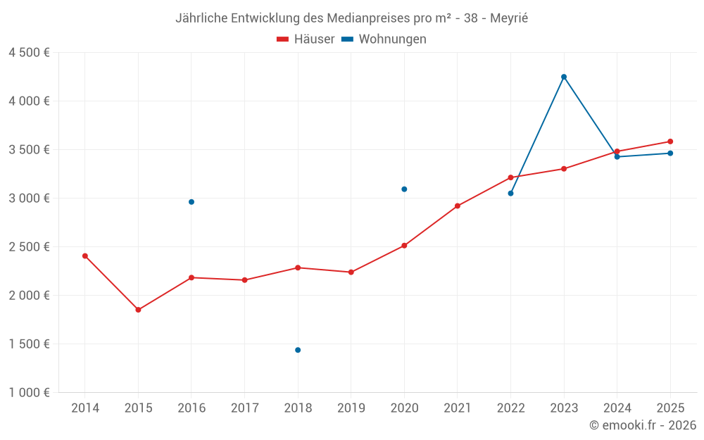 Entwicklung des Medianpreises pro m² von Wohnungen