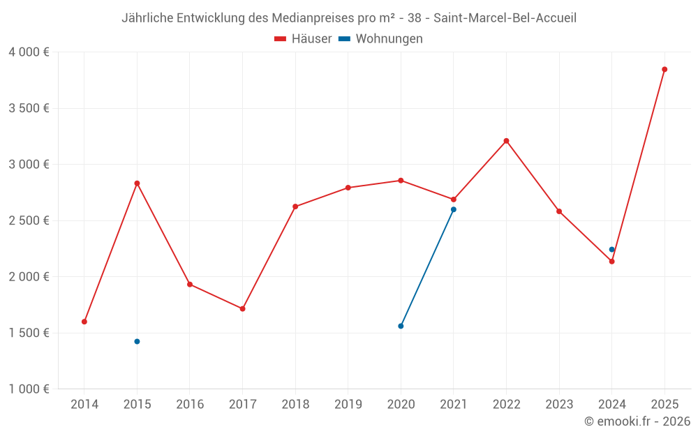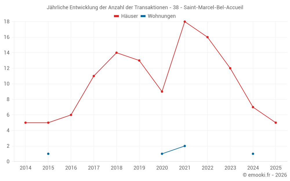 Der Durchschnittspreis auf den 17 Hausgeschäften der letzten 24 Monate in der Gemeinde Saint-Marcel-Bel-Accueil betrug 2 544 € pro Quadratmeter für einen mittleren Immobilienwert von 275 000 €. Über diesen Zeitraum hinweg lagen 60% der Transaktionen zwischen 2 082 und 4 209 € pro Quadratmeter (vom 2. bis zum 8. Dezil).