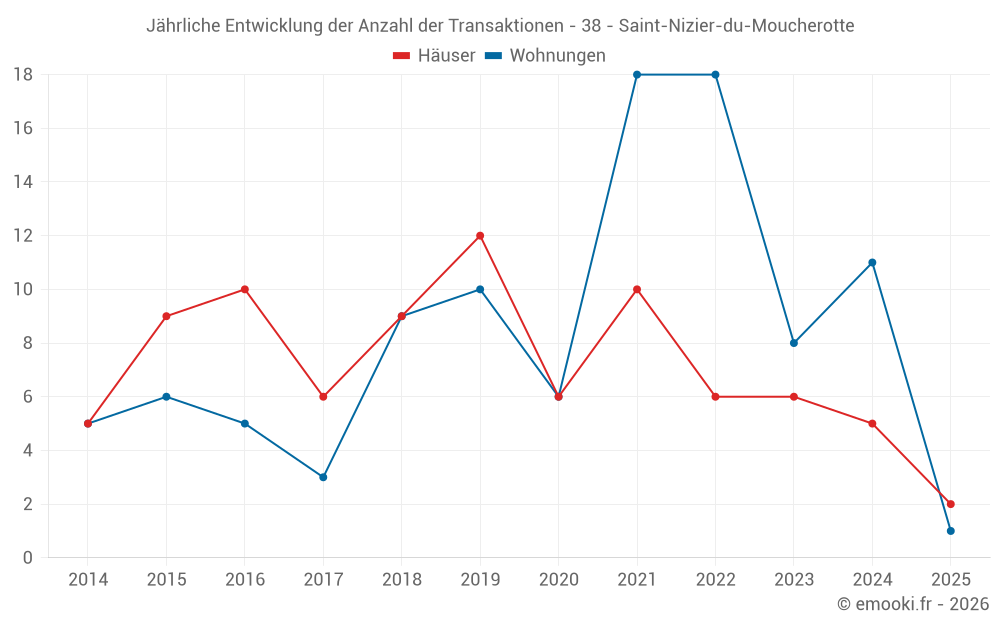 Der Durchschnittspreis auf den 14 Wohnungstransaktionen der letzten 24 Monate in der Gemeinde Saint-Nizier-du-Moucherotte betrug 3 450 € pro Quadratmeter für einen mittleren Immobilienwert von 208 230 €. Über diesen Zeitraum hinweg lagen 60% der Transaktionen zwischen 3 164 und 4 059 € pro Quadratmeter (vom 2. bis zum 8. Dezil).