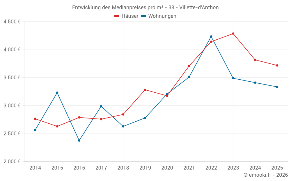 Karte der Immobilienpreise in der Gemeinde Villette-d'Anthon, wählen Sie einen Abschnitt, um Transaktionen nach Parzelle zu sehen.