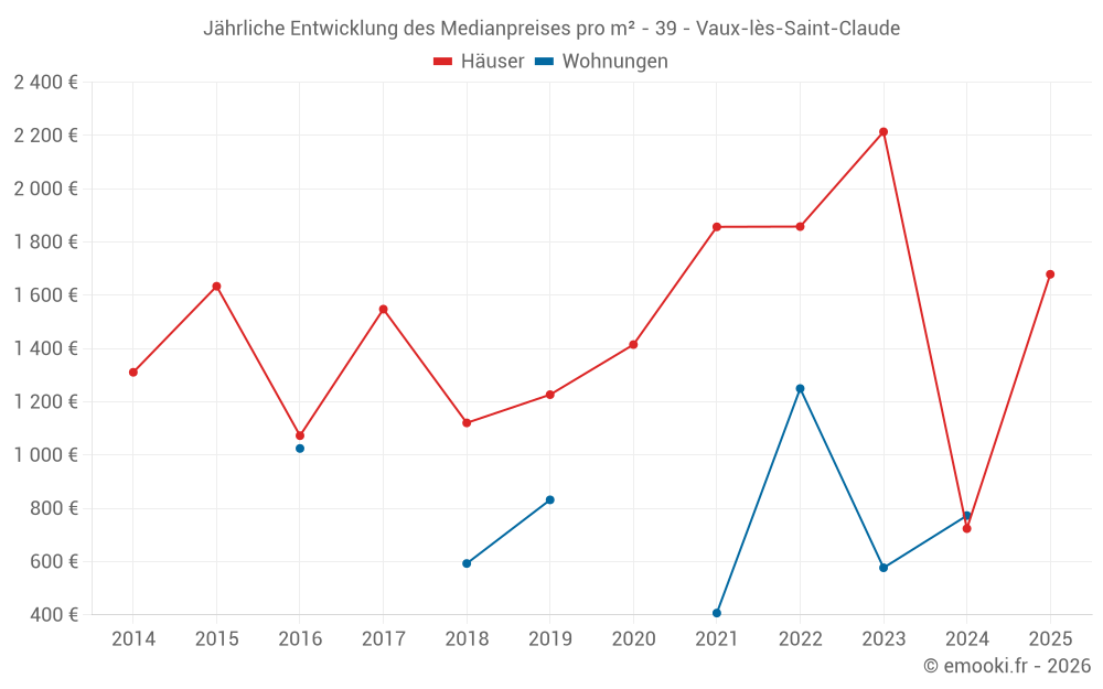 Der Preis pro m² von Häusern ist seit 1 Jahr um 132% gestiegen, aber er ist in 3 Jahren um 10% gesunken.